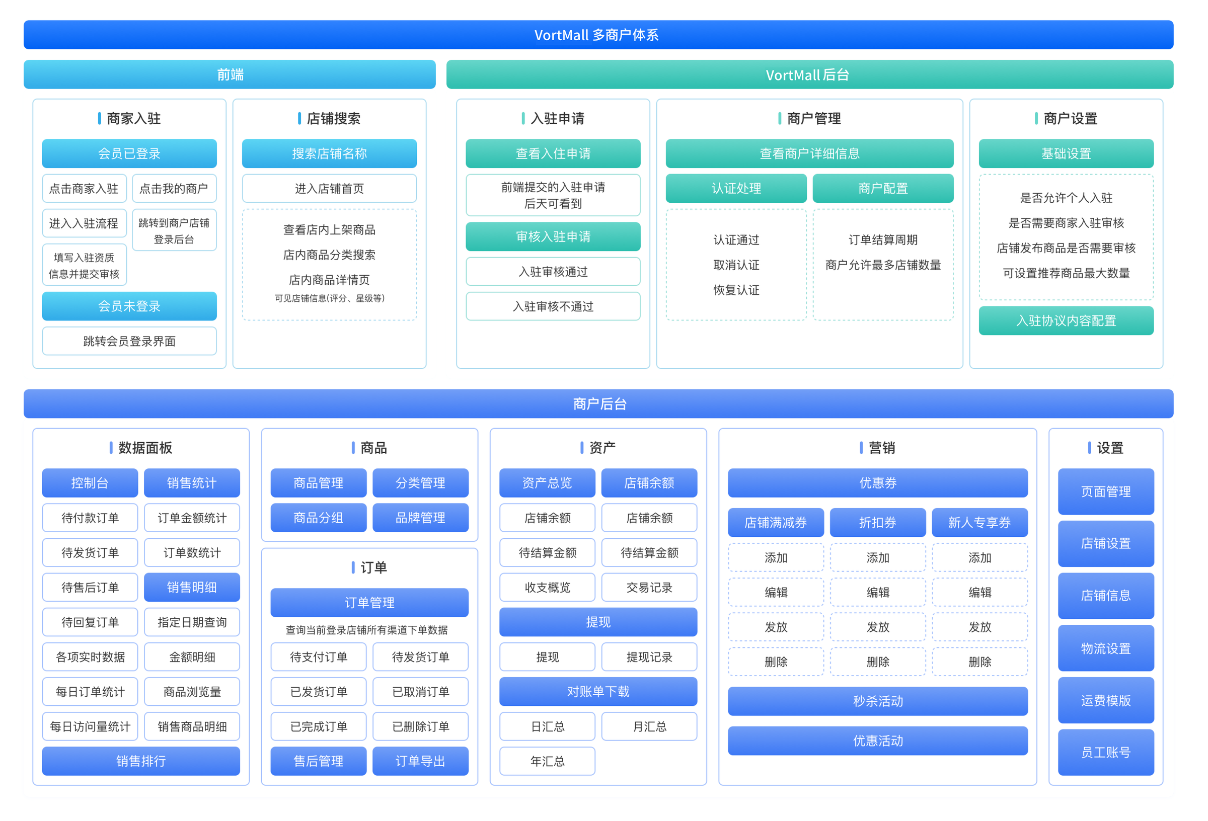 独立的商户审批入驻体系,支持商户扩展其它模式,如多门店等