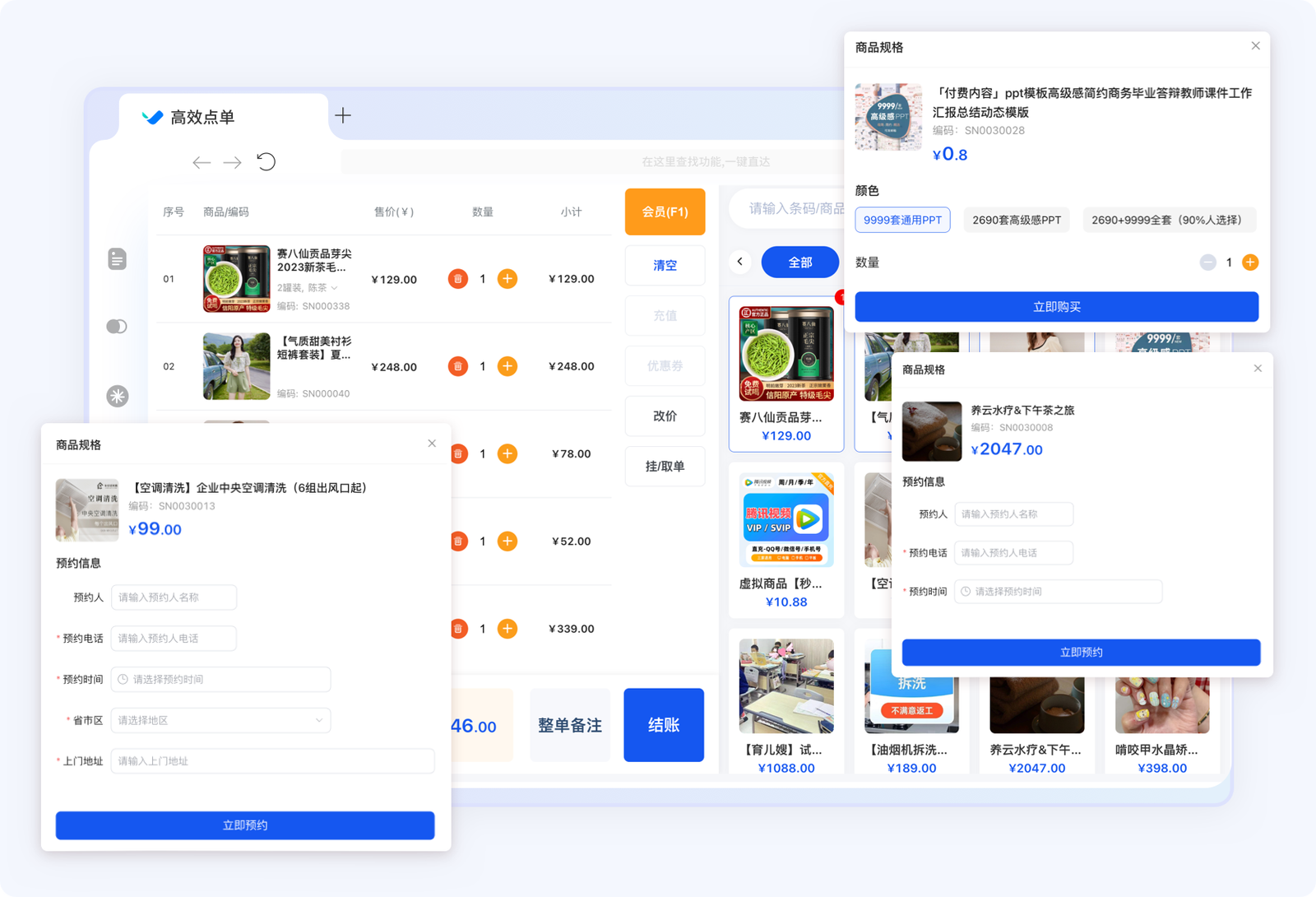 ◦ 支持用户预约到店及预约上门服务(O2O专用)